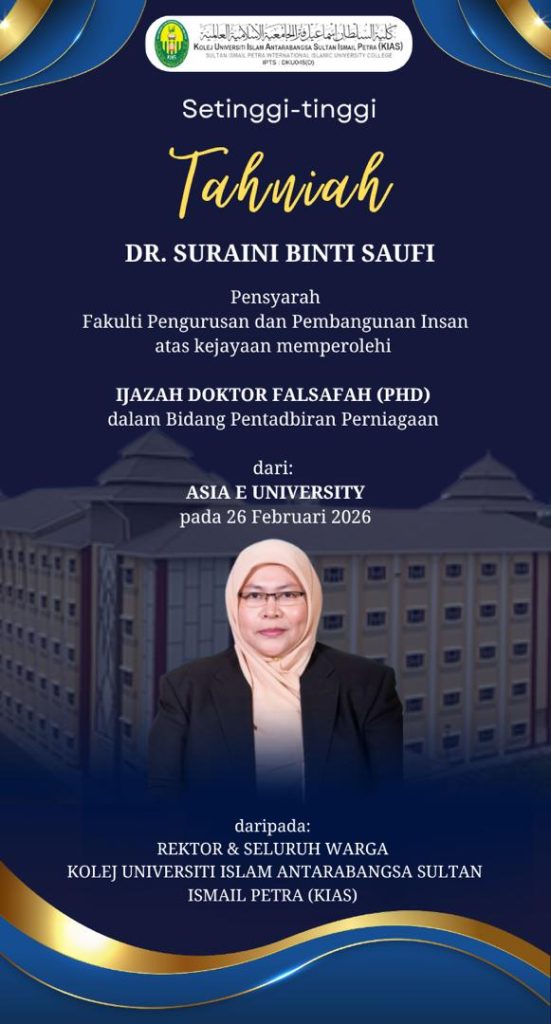 2026 RECTOR’S ADDRESS GATHERS NEARLY 300 KIAS COMMUNITY MEMBERSSultan Ismail Petra International Islamic University College (KIAS) organised the 2026 Rector’s Address on 12th January 2026, corresponding to 22 Rejab 1447H. Held at Dewan Johor, KIAS, the event gathered nearly 300 members of the KIAS community, including academic staff, management staff,…